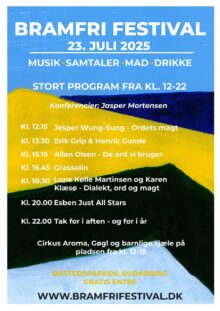 23. juli bliver en inspirerende dag, hvor ord, musik og leg bliver flettet sammen til en unik oplevelse, når Bramfri Festival bliver afviklet i Rudkøbing på Langeland.