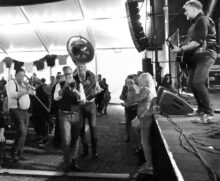 Forinden havde irske Drops of Green givet endnu en underholdende koncert med mange af de kendte sange og melodier, som man kunne synge med på. De blev efterfulgt af hollandske bigband JP & The Seeger Session Band med 13 musikere på scenen, som gav en koncert med musikere både på og foran scenen og ude blandt publikum. Repertoiret er stort set det traditionelle med deres faste numre, som publikum kan synge med på. (Øverste foto)